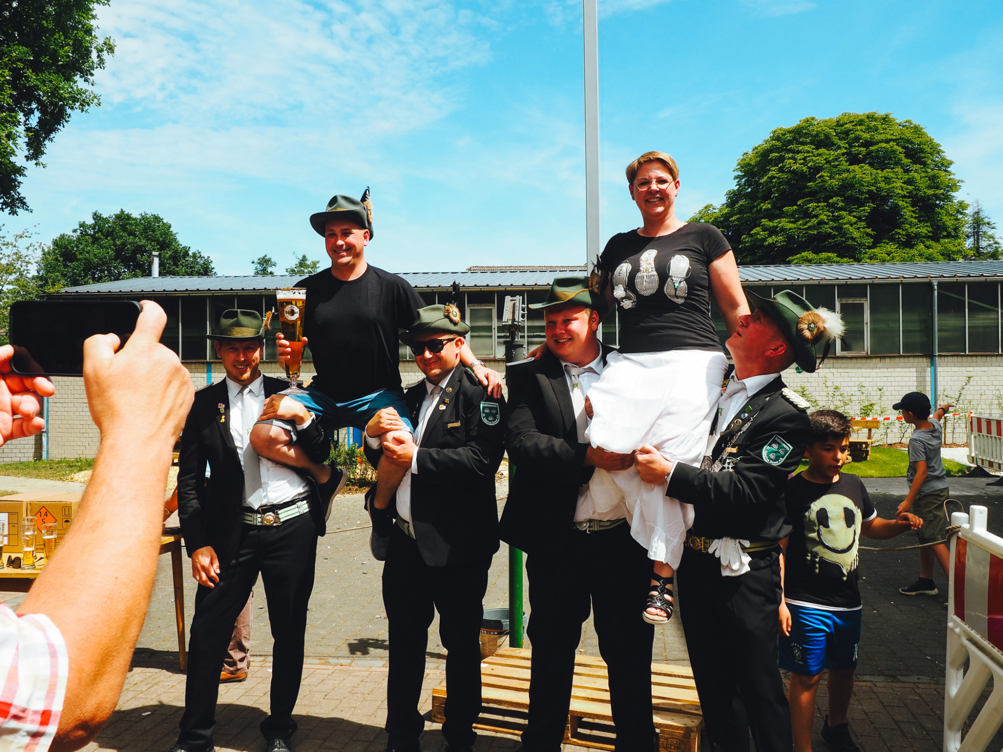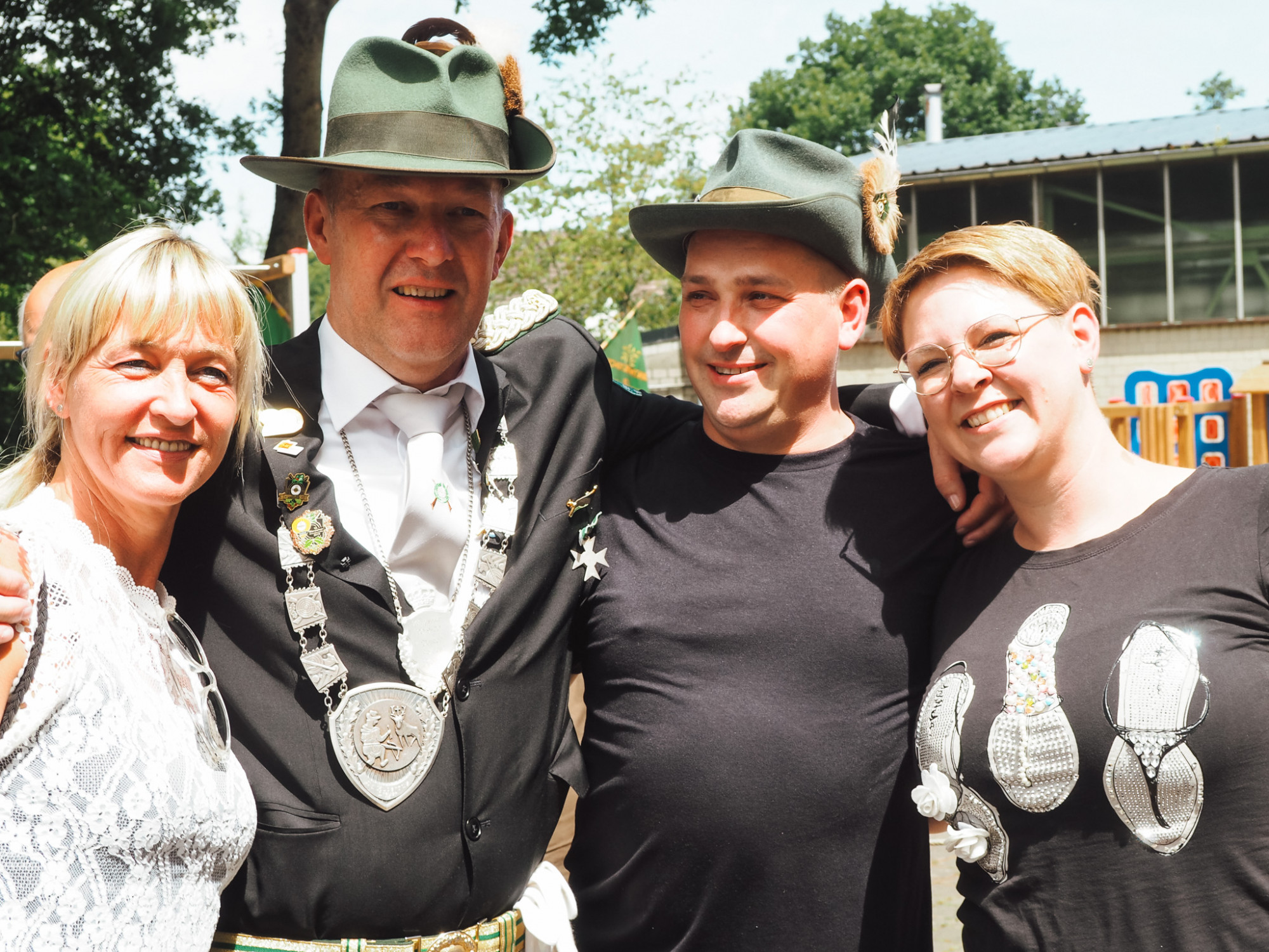 Wie schön war der Moment, als Maik Zuppa als frischgekürter König mit Glückstränen in den Augen seine Marina in die Arme schloss – und so ein versöhnliches Ende für ein Vogelschießen, das doch ziemlich zäh war. Zur Insignienjagd – passend zu Ex-König Volker Köhnes beruflichem Hintergrund gab’s statt Apfel und Zepter Hammer und Amboss – war die Schlange noch lang. Volker Köhne selbst holte “Coron-Aar, dem Nervigen” direkt beim ersten Schuss die Krone vom gefiederten Kopf, den Hammer sicherte sich Christopher Kühle mit dem 23. Schuss.