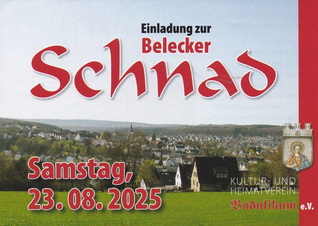 Der Kultur- und Heimatverein Badulikum e.V. lädt herzlich zur diesjährigen Belecker Schnad am Samstag, den 23. August 2025, ein. Treffpunkt für uns Dreweraner ist um 13:00 Uhr am Möhnetalradweg, Bereich „Drewer-Heide“.