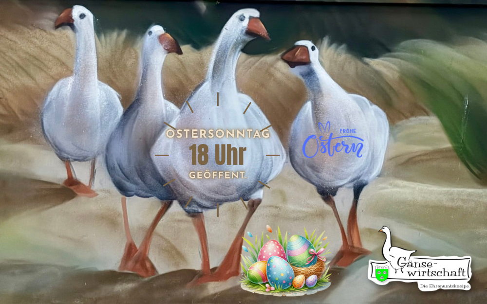 Die Gänsewirtschaft ist nun doch am Ostersonntag ab 18 Uhr geöffnet und es gibt jetzt auch ein Osterfeuer in einer Feuerschale vor der GäWi!